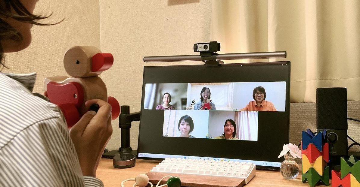 オンライン子育て教室では、講師より実際のおもちゃを見せながら、選び方、遊び方や発達との関係について学んでいただきます。