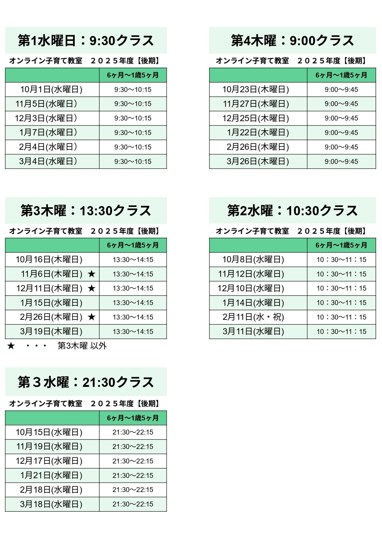 日程のご都合が悪い場合、期内(10月~3月)の同じクラスへの振替が可能です。